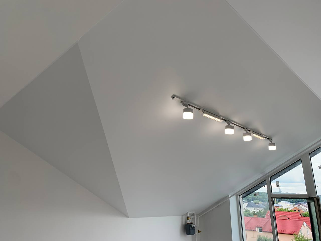 Натяжні стелі з трековим освітленням — це сучасне і стильне рішення, яке додає функціональності та естетики будь-якому простору. Трекове освітлення дозволяє встановити світильники на спеціальну шину, що монтується до стелі, і створити направлене, регульоване світло для різних зон приміщення.